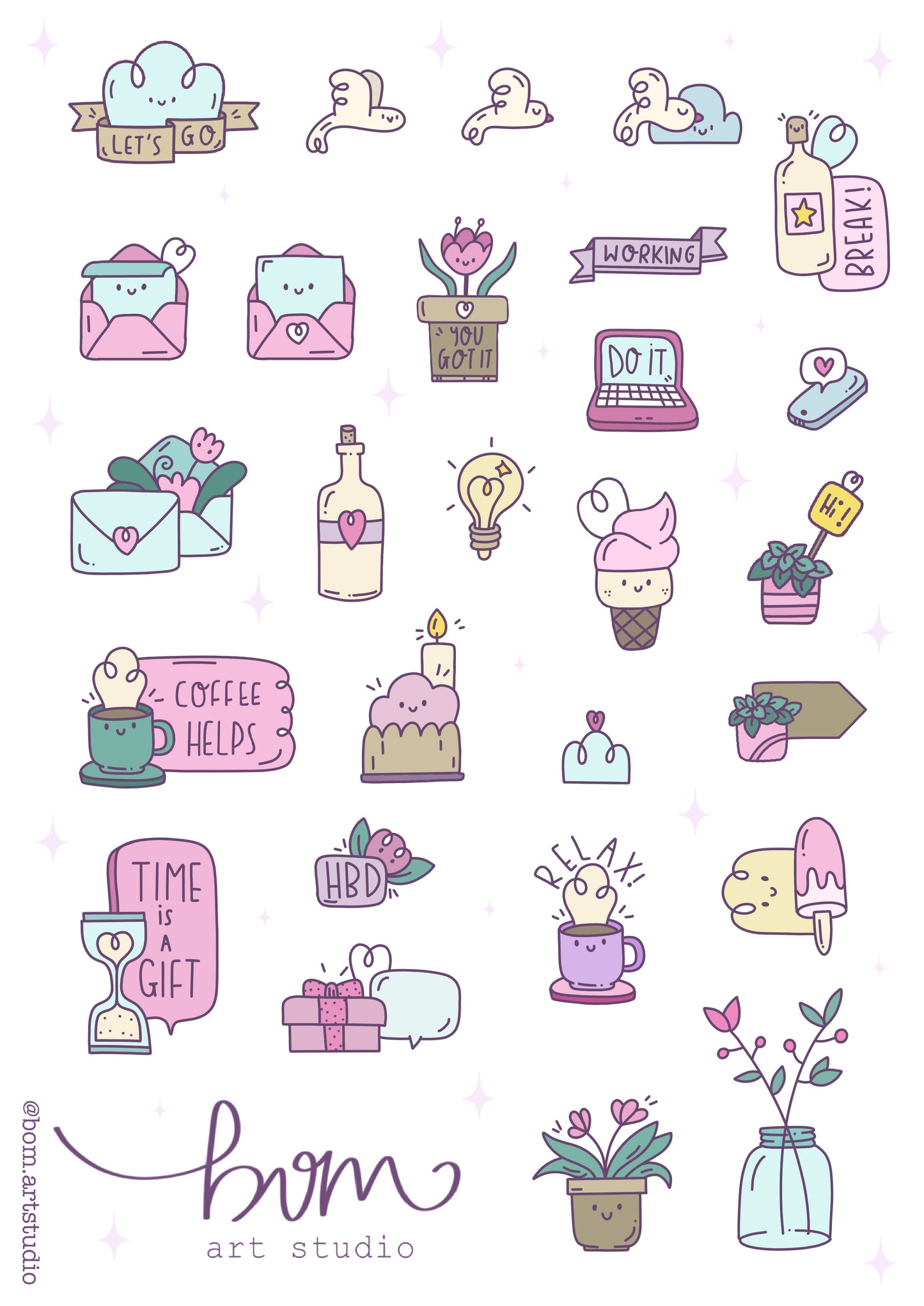 Cute original illustration sticker set designed by BOMart.studio