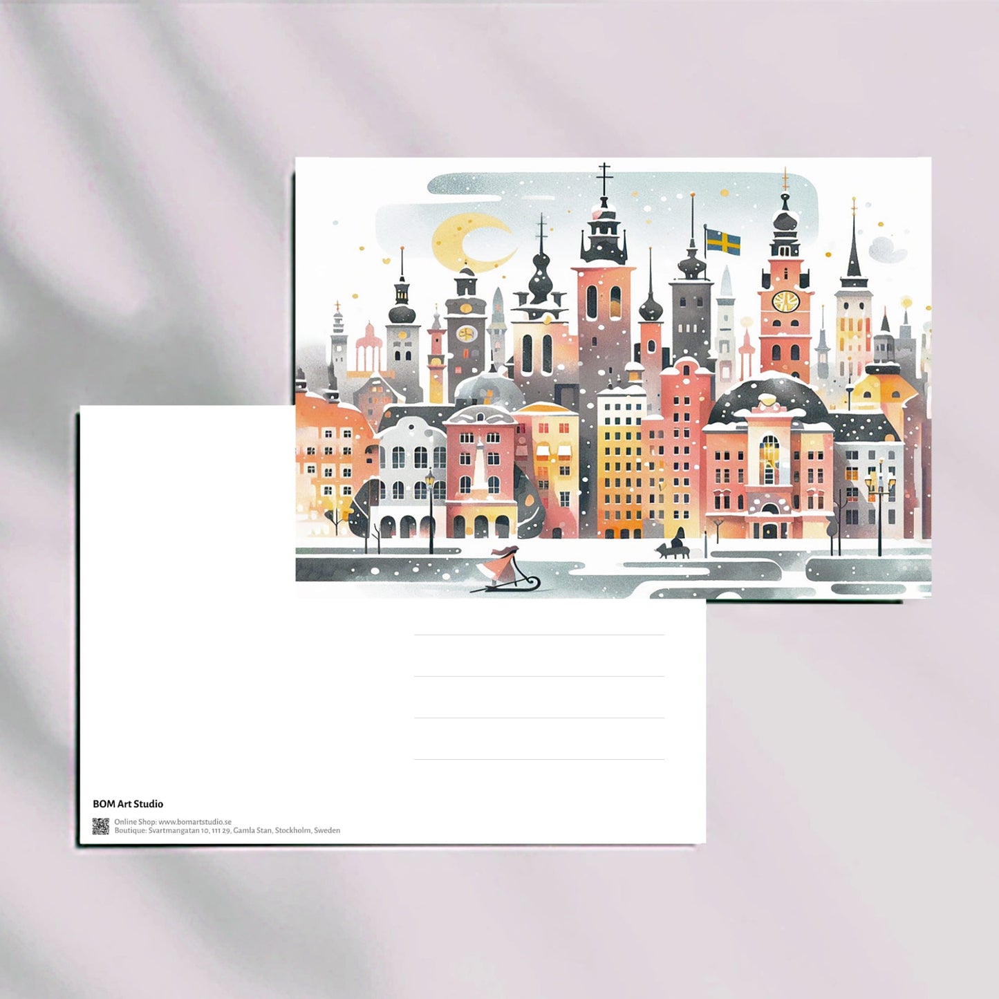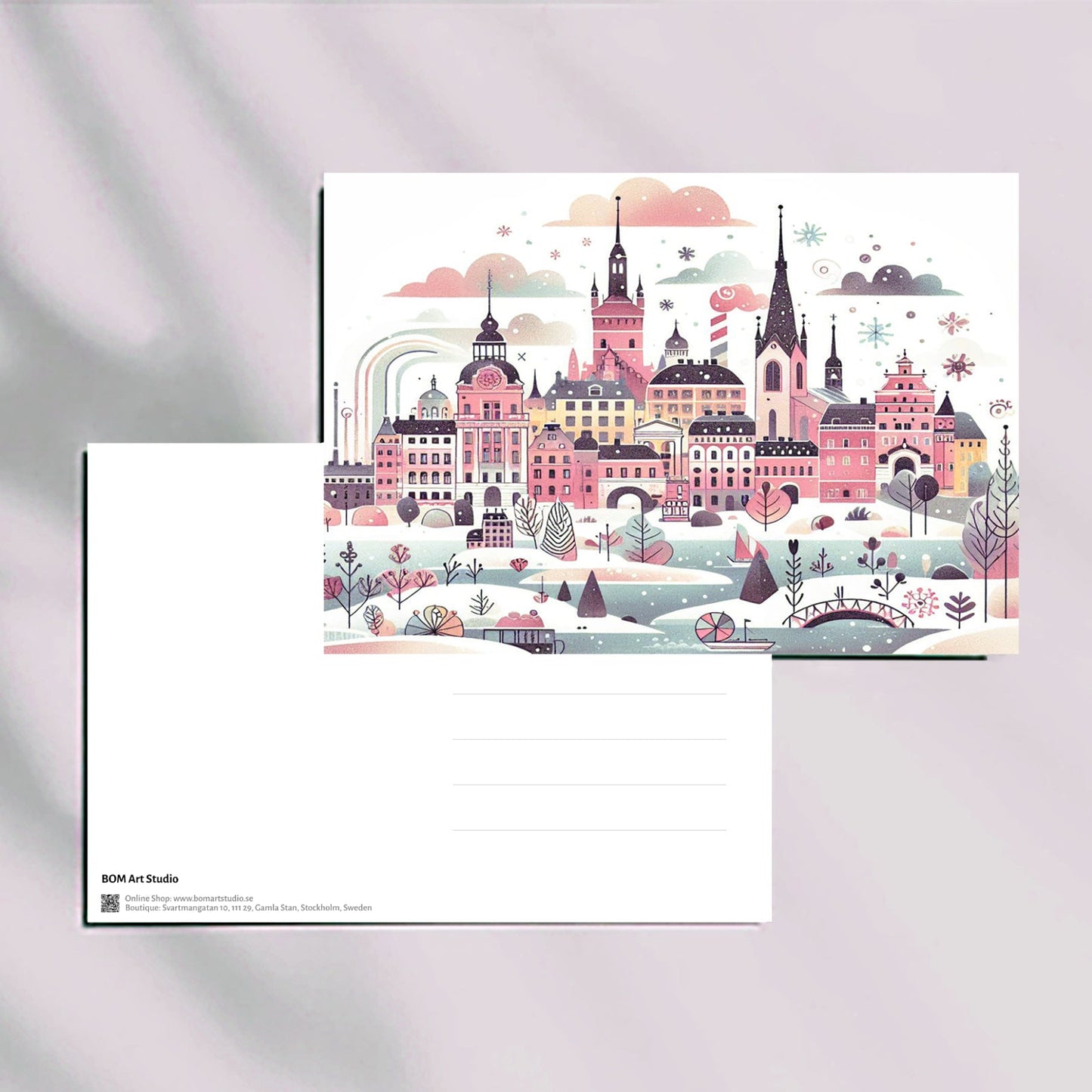 Winter's Waltz Whispers postcard collection with original illustrations by BOMart.studio