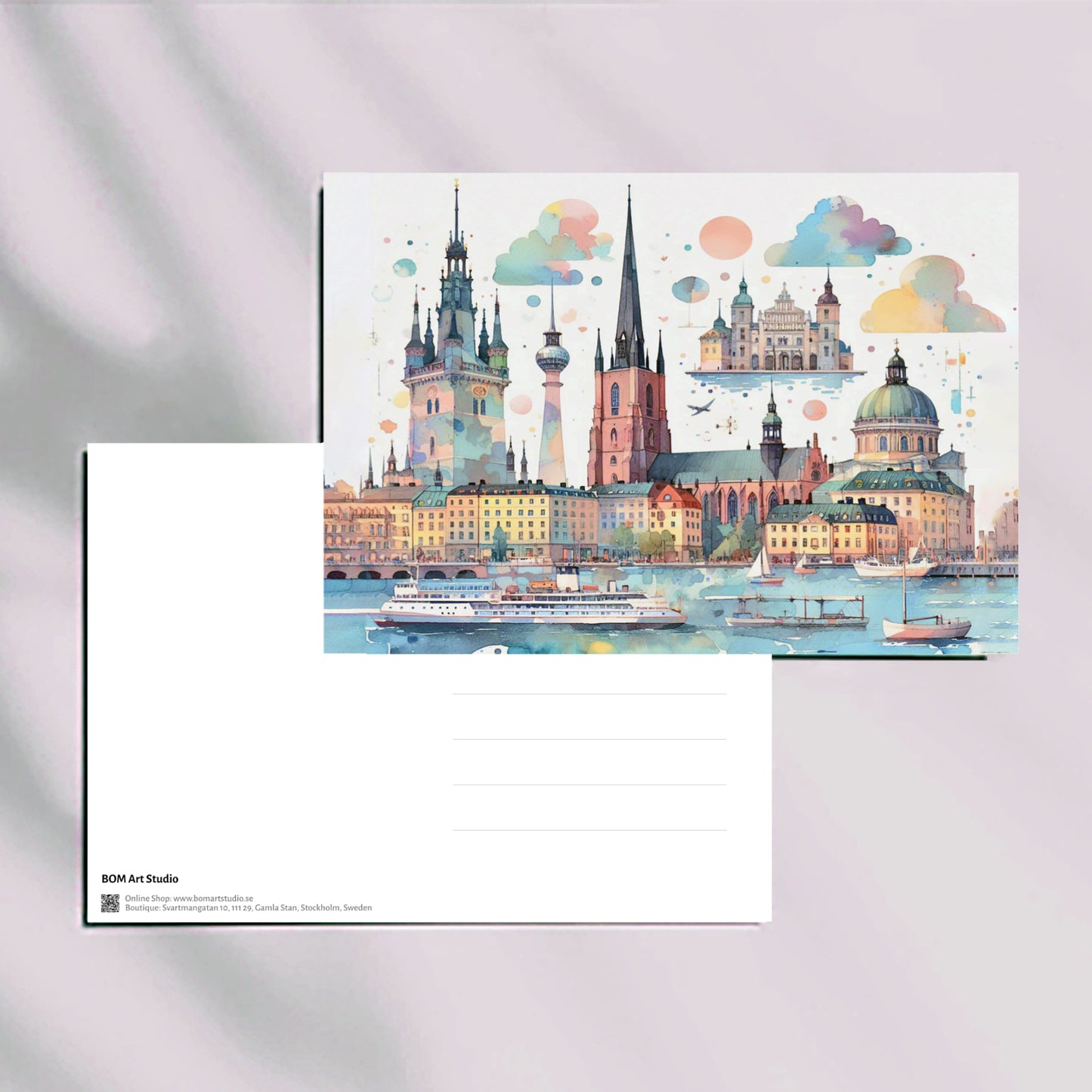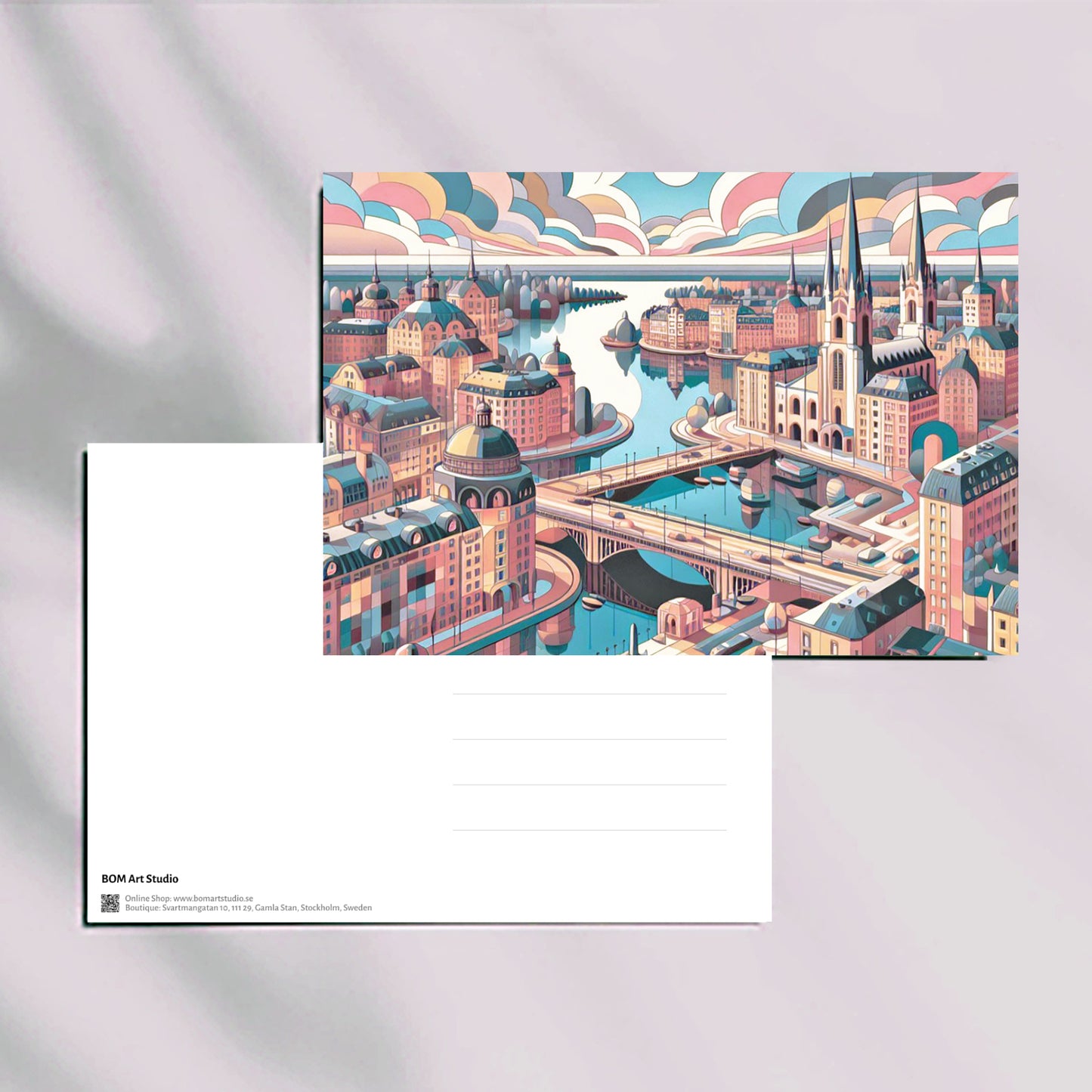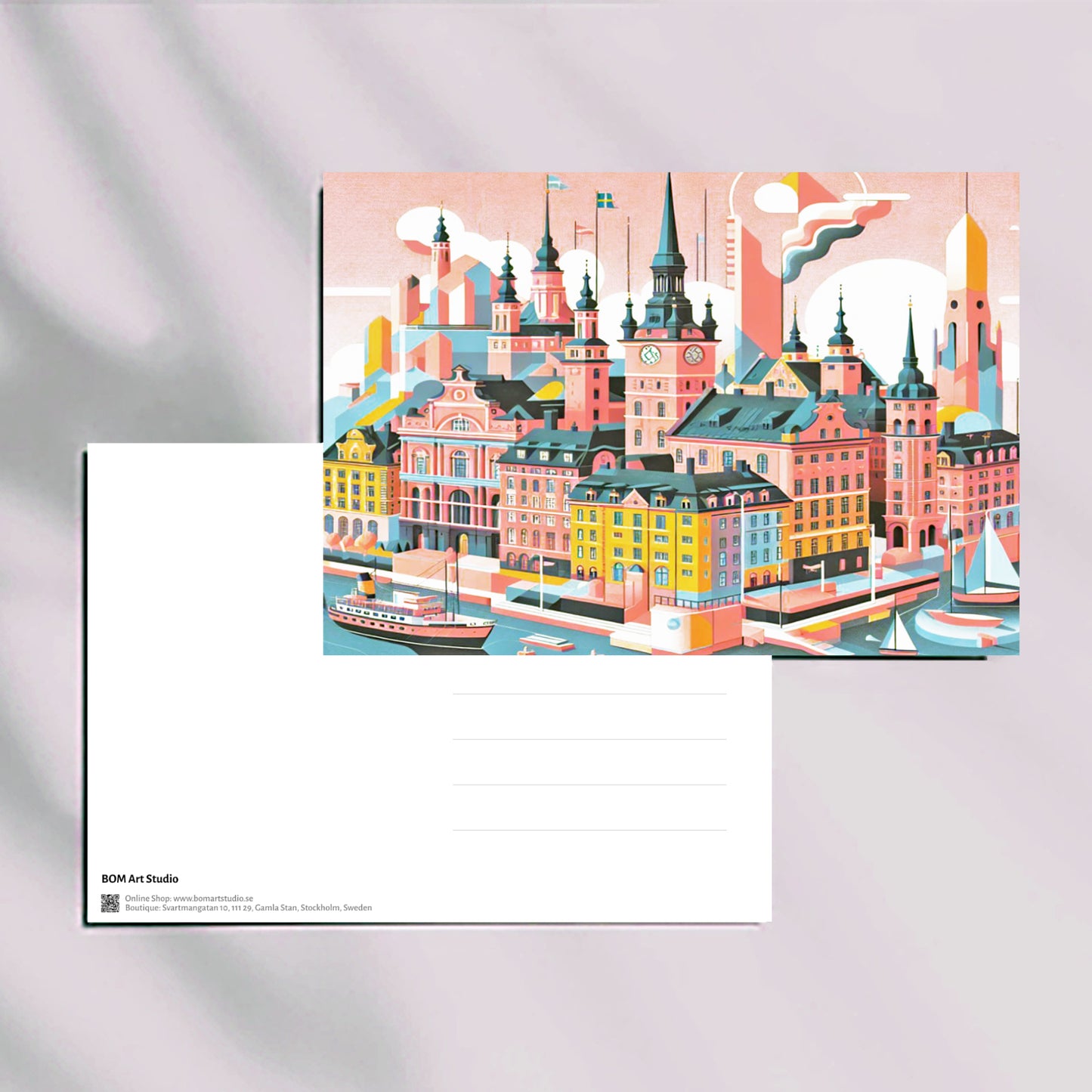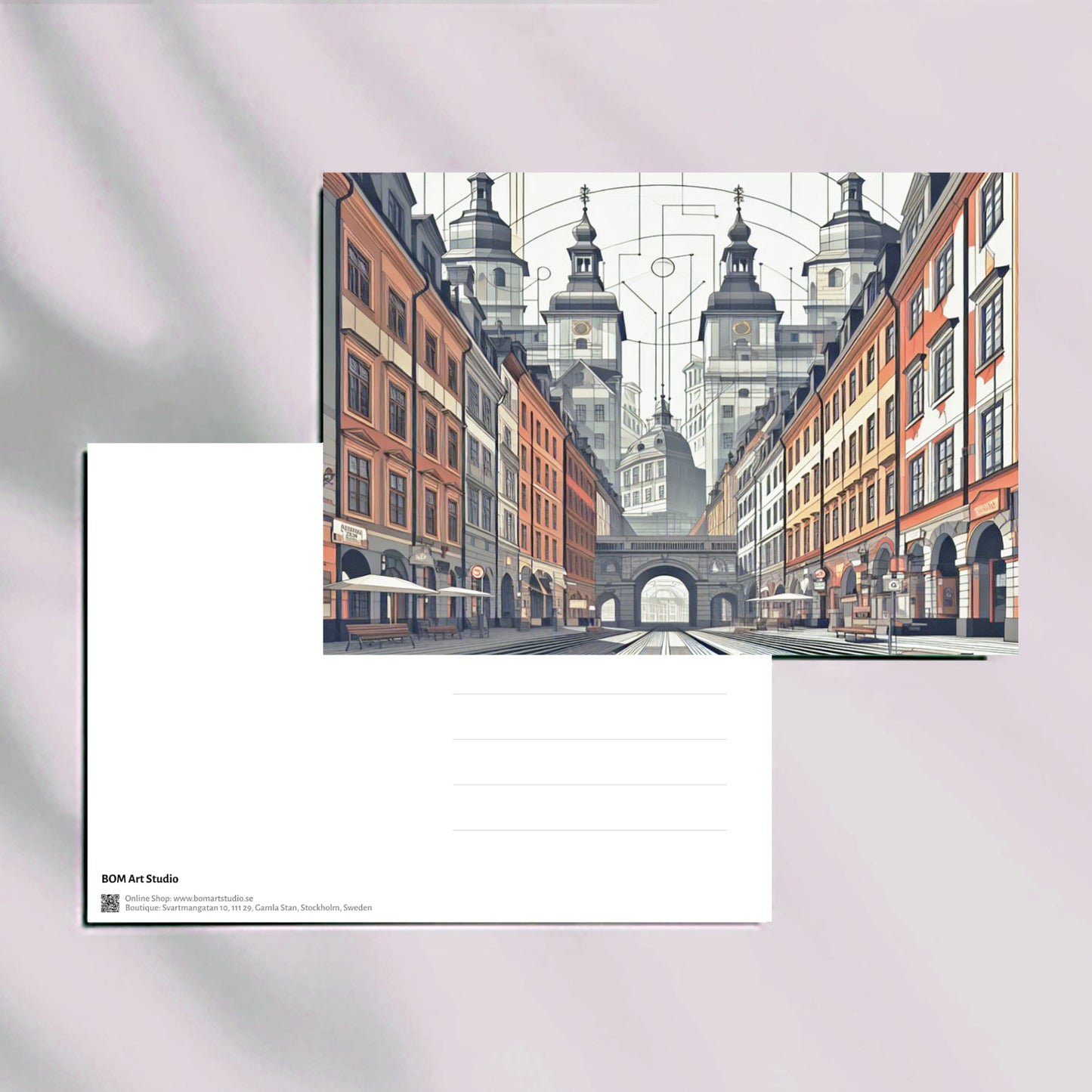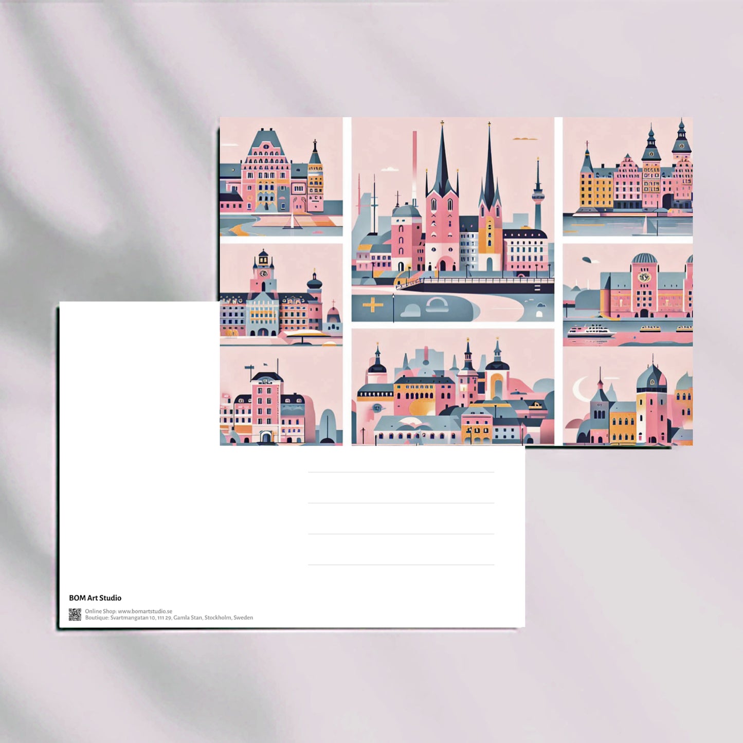Swedish Urban Elegance postcard collection with original illustrations by BOMart.studio